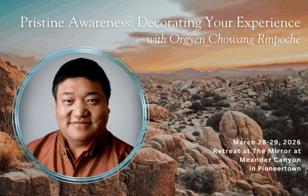 Join Dzogchen meditation master Orgyen Chowang Rinpoche for a 2-Day Meditation Retreat at The Mirror in Pioneertown, California. Through Rinpoche’s profound teachings and step-by-step guided meditation instructions, we will learn powerful techniques to uncover the spacious, expansive vibrancy of our natural state of mind. These methods support the cultivation of unconditional happiness and help us blend meditation practice into daily life. Rinpoche will illuminate our pristine awareness and demonstrate how we may decorate our mind, transforming our everyday reality into an extraordinary experience.