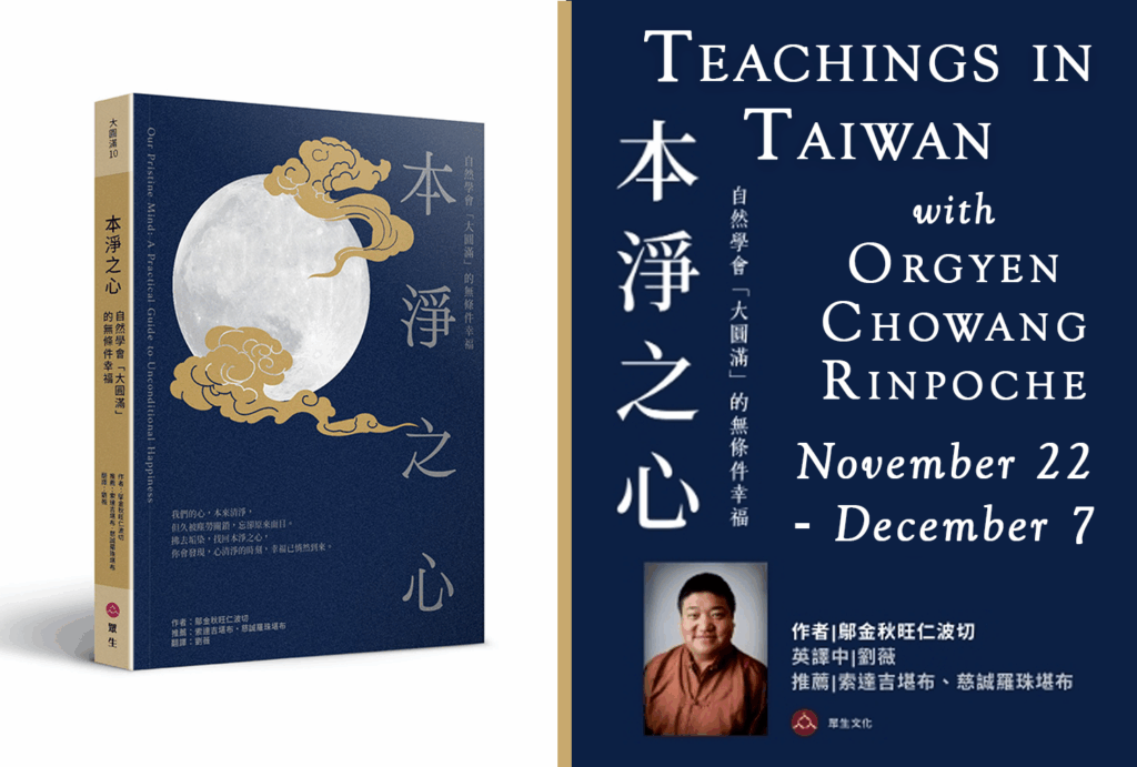 Orgyen Chowang Rinpoche will be visiting Taiwan from November 22nd – December 7th and offering the following teachings.